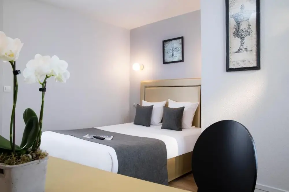 A l'Hôtel Des Roys se situe à l'adresse 14, avenue de Paris, 78000 Versailles, France. Cet établissement propose des chambres équipées d'une télévision à écran plat, d'un accès WiFi gratuit, d'une salle de bain privée avec douche, ainsi que des canaux câblés. Les chambres sont accessibles via un ascenseur et disposent de sanitaires modernes. L'hôtel dispose également d'un bar sur place. Certaines chambres sont conçues pour les familles et acceptent les animaux de compagnie. Situé en plein centre de Versailles, il offre un accès facile au Palais de Versailles à 1 km, aux Jardins du Château de Versailles à 600 mètres, ainsi qu'à plusieurs sites historiques tels que le Domaine de Madame Elisabeth ou la Maison de la Reine. Les clients ont notamment souligné le confort des chambres, la qualité du petit déjeuner et le service attentionné du personnel.